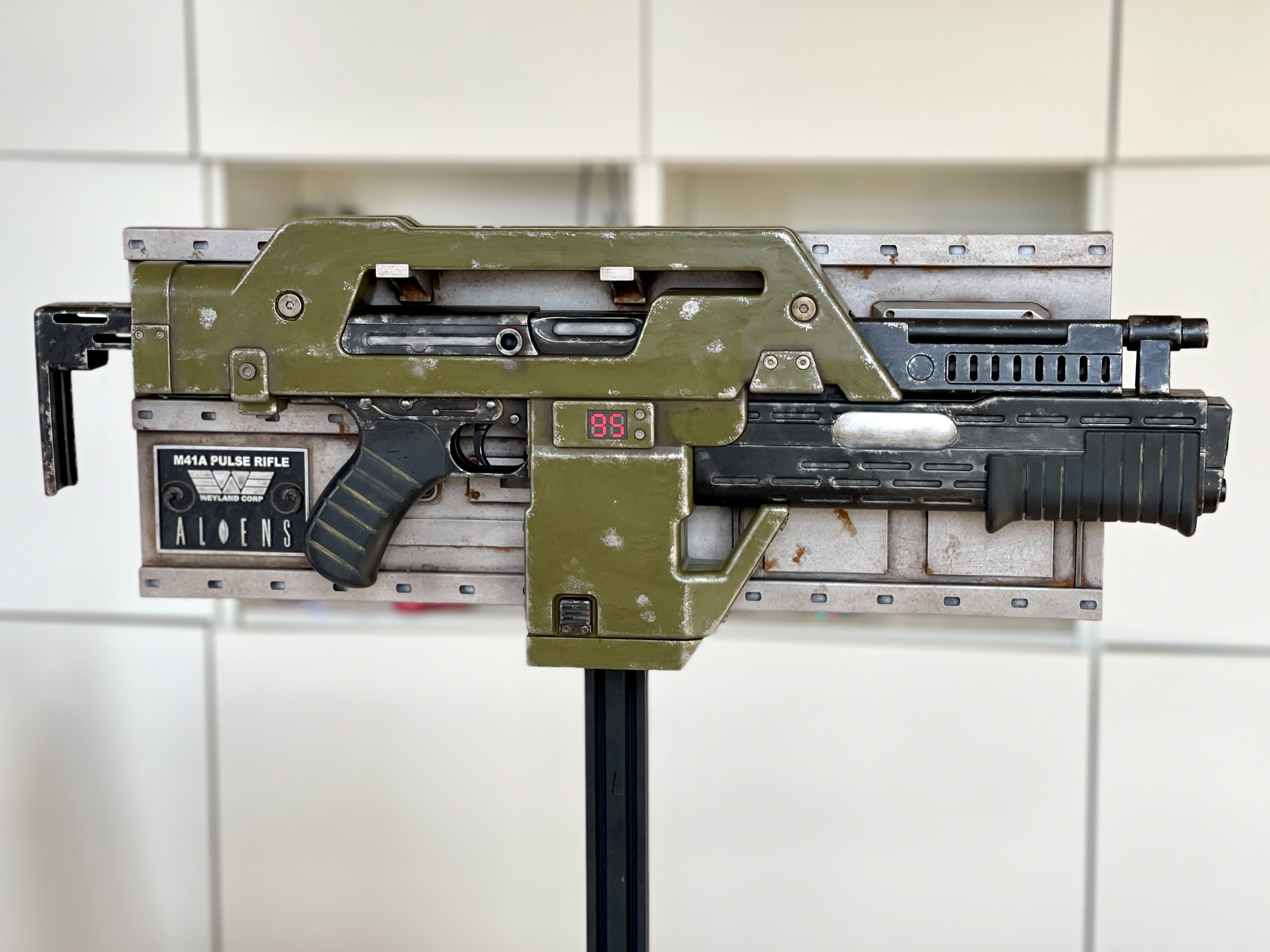 A fully modified Nerf Pulse Rifle M41A, meticulously customized to be movie-accurate.